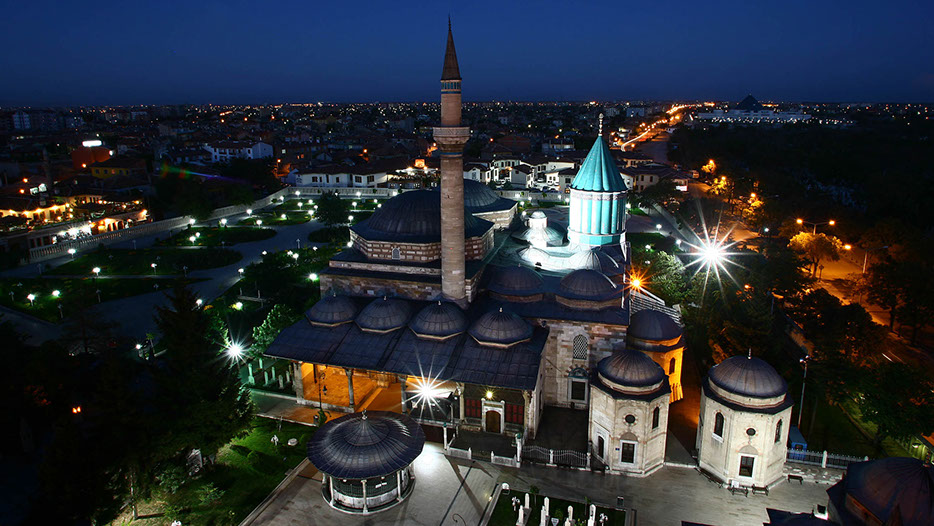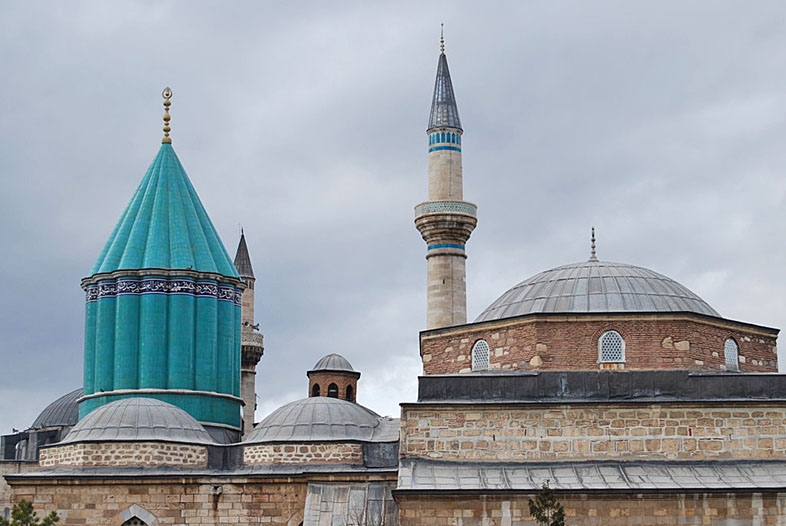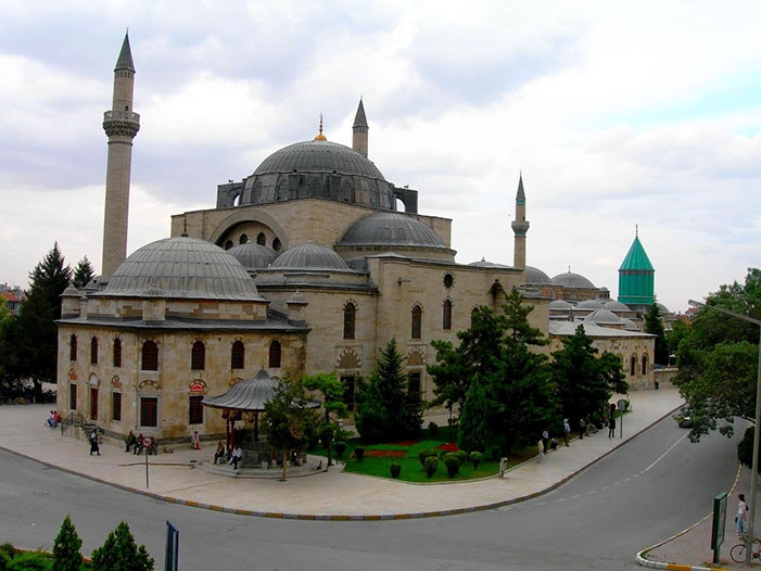 Hz. Mevlâna’nın Dergâhı günümüzde Mevlana Müzesi olarak ziyarete açılan bu görkemli yapı 1274 yılında Mevlana’nın oğlu Sultan Veled tarafından yaptırılmıştır. 19.yy’a kadar Osmanlı padişahlarının katkılarıyla daha da büyüyen dergah, Hz. Mevlâna'nın türbesine ev sahipliği yapmaktadır. Mevlâna Müzesi'ni, ortalama olarak yılda 2 milyon civarında yerli ve yabancı turist ziyaret etmektedir.